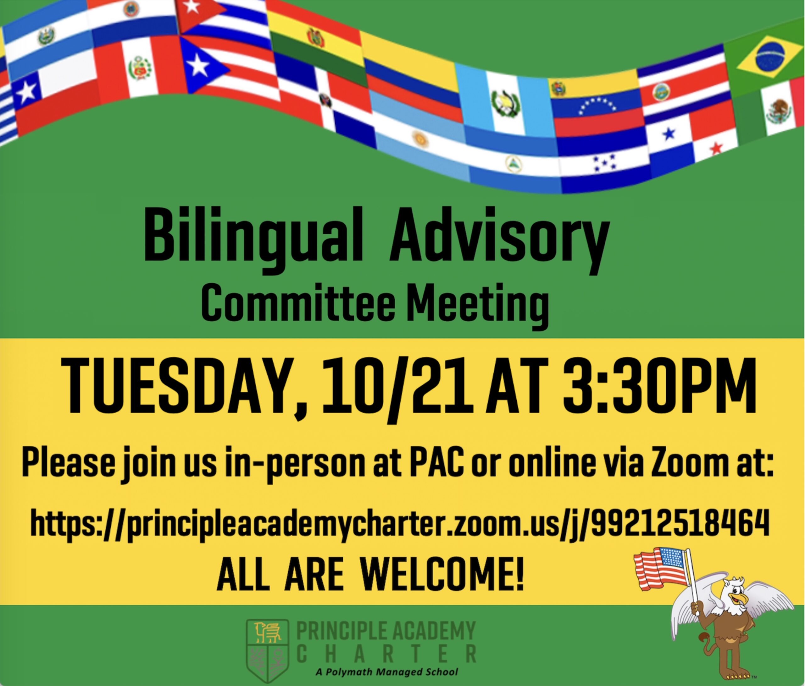 Next Bilingual Advisory Committee meeting scheduled for Tuesday, October 21st, at 3:30pm.